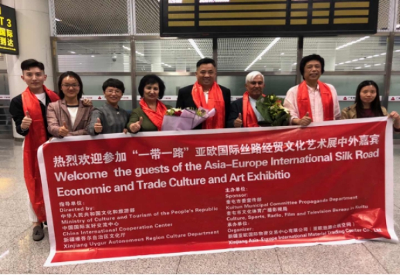 2018年9月21日,新疆亚欧国际物资交易中心有限公司在乌鲁木齐机场迎接乌兹别克斯坦前文化体育部部长库兹耶夫•图尔苏纳里、乌兹别克斯坦著名油画大师沙依拉•库兹耶娃、中外友好国际交流中心主任柯志华、中国非遗云锦金文大师及嘉宾。