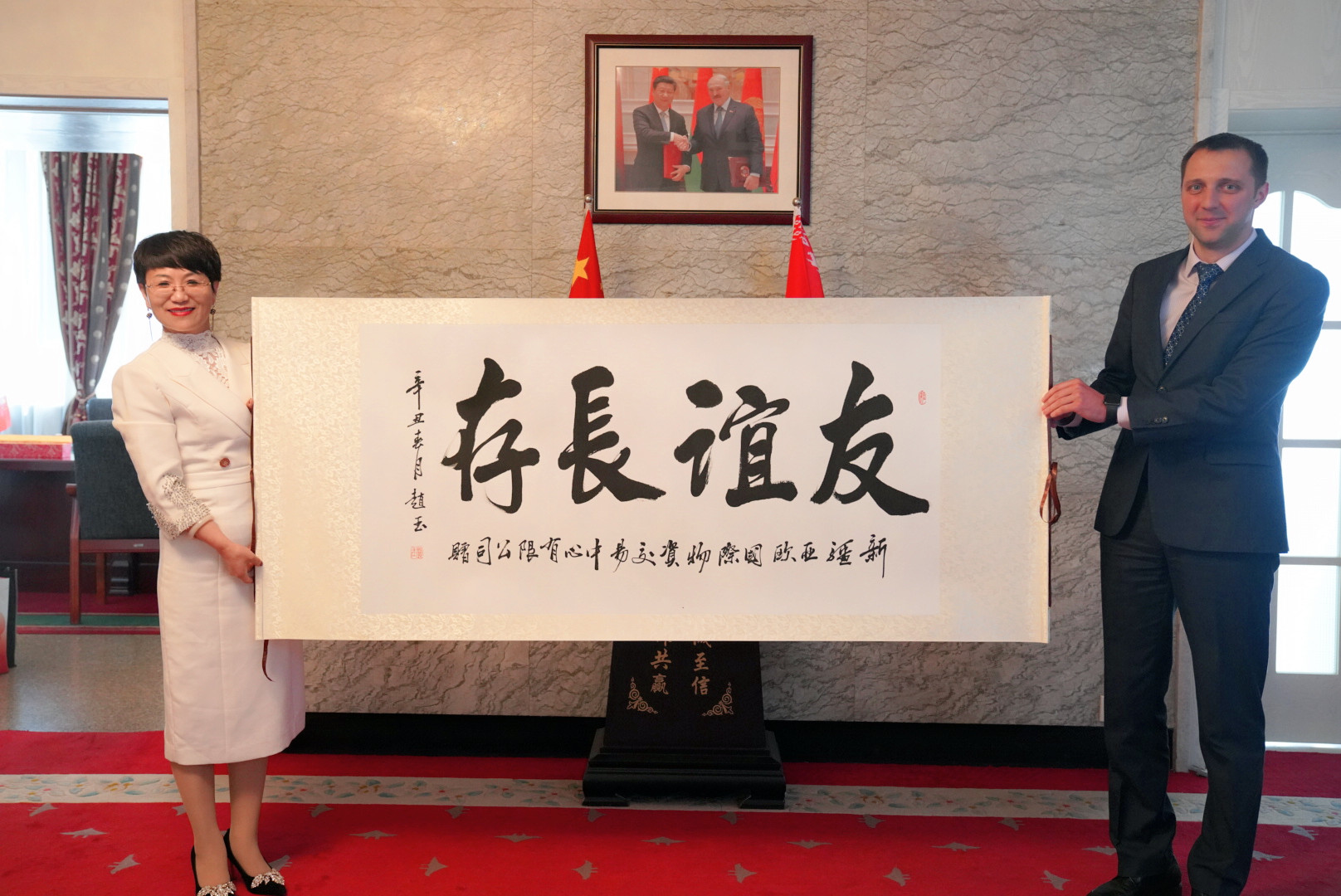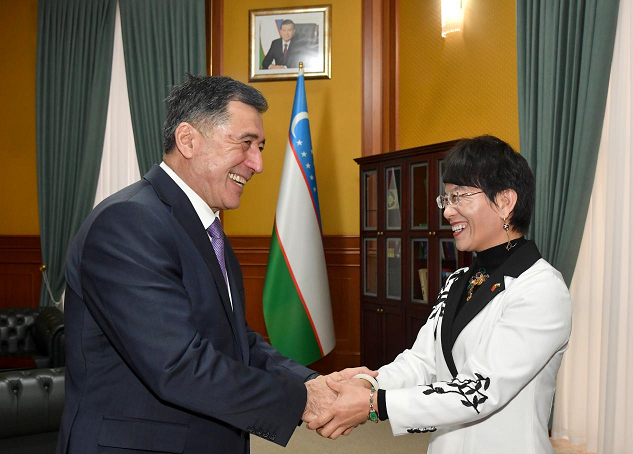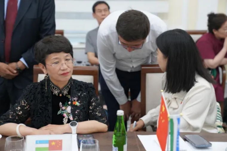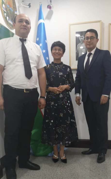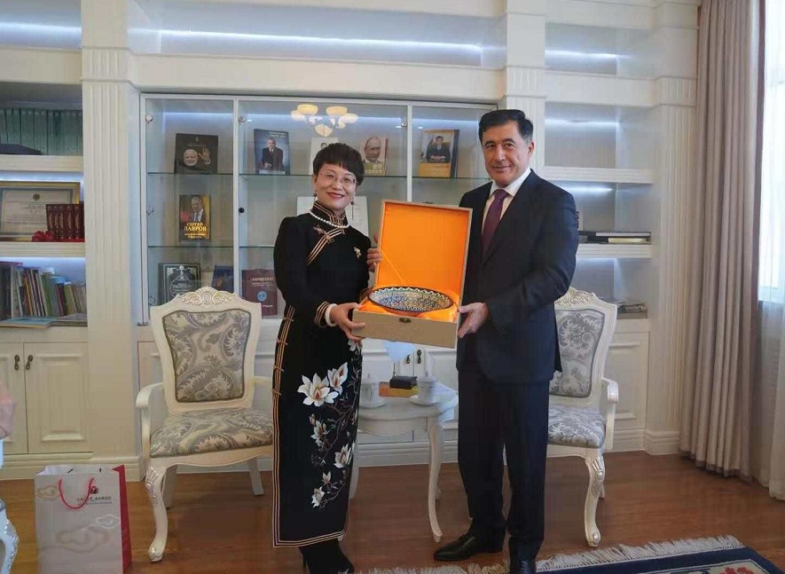 张宏萍董事长和乌兹别克斯坦驻中国参赞亲切交谈