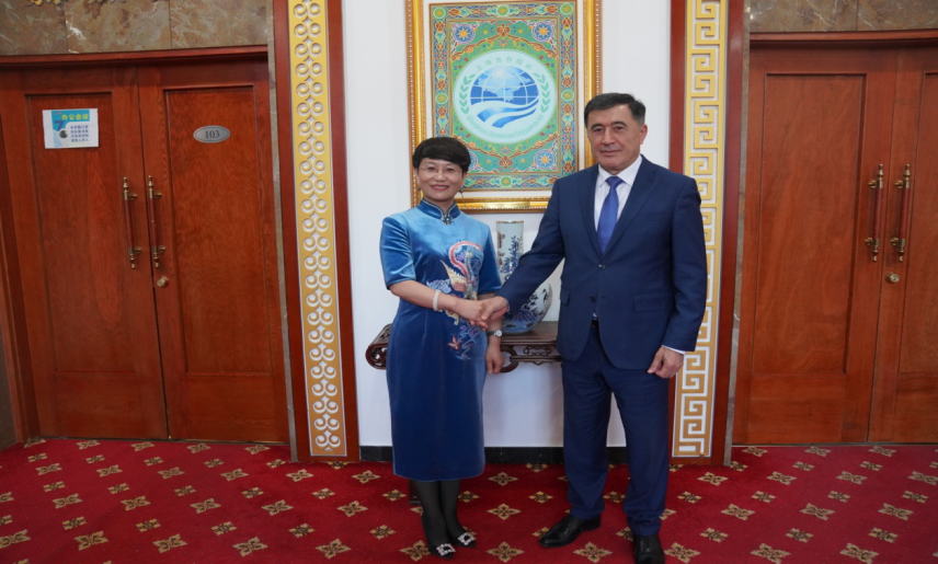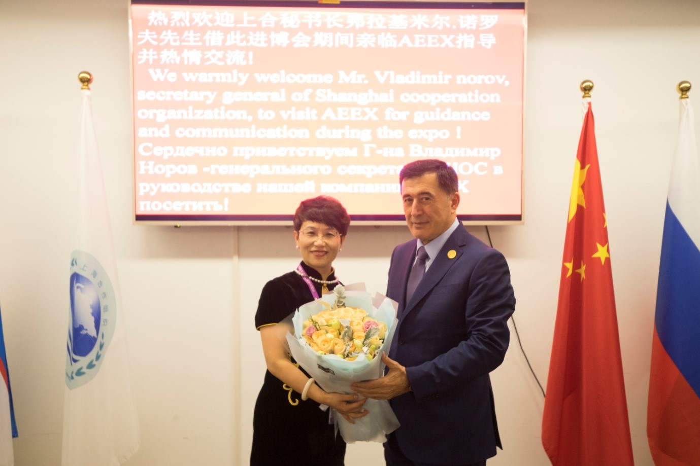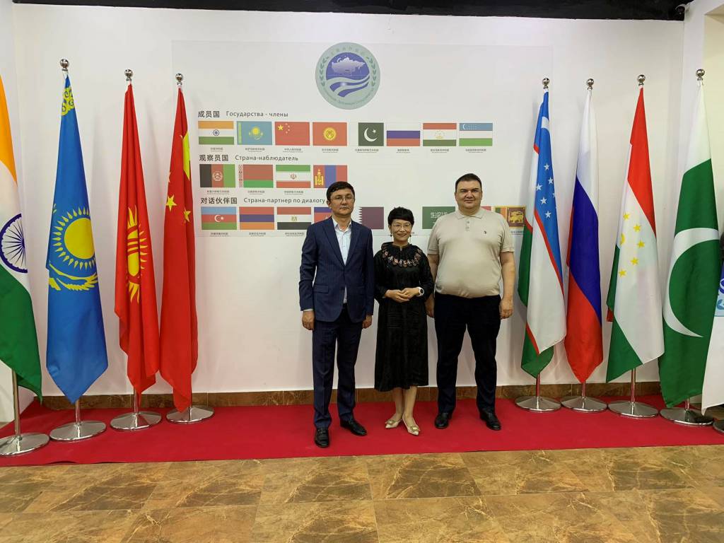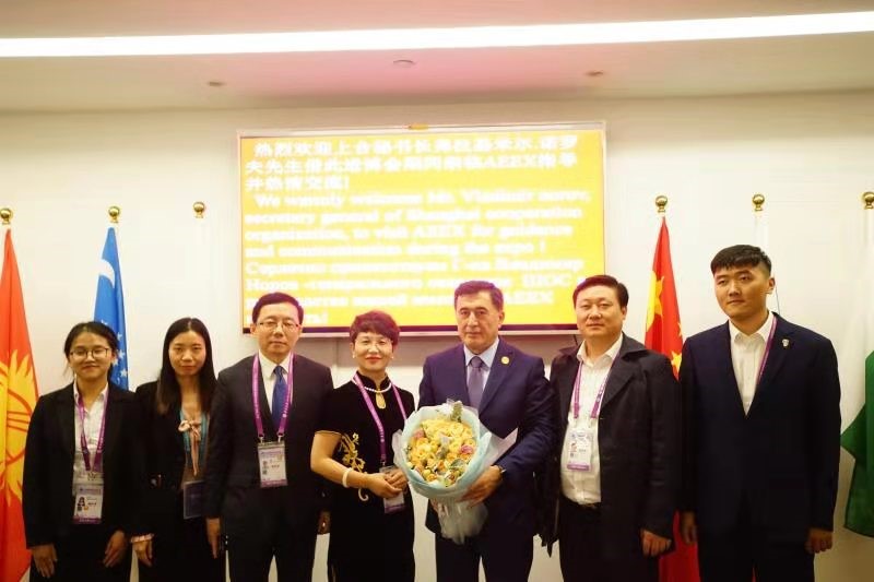 2019年5月8日,新疆亚欧国际物资交易中心有限公司董事长张宏萍、乌兹别克斯坦共和国前文化体育部部长(现任乌兹别克斯坦共和国卡里莫夫文化馆副馆长)KUZIEV.TURSUNALI专程拜会了上合组织秘书长诺罗夫先生,就加强中国同中亚各国在经贸、文化、人文交流,推动上海合作交易所联盟的全面发展进行了深入细致的交流,达成了广泛共识。