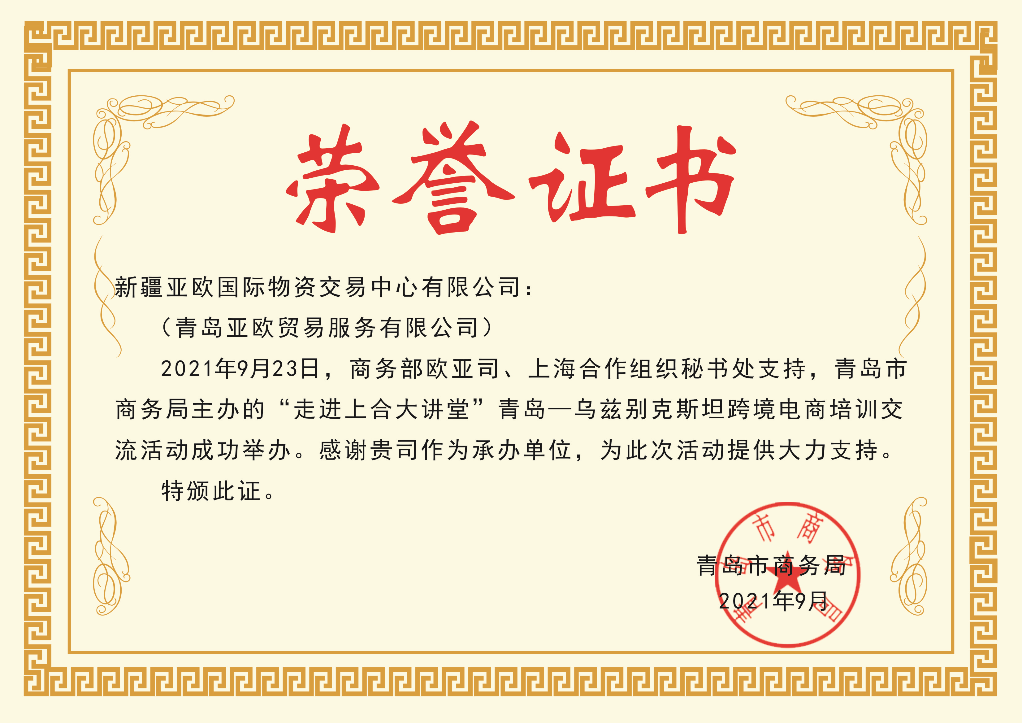 新疆亚欧国际物资交易中心有限公司参加中国新疆创业创新大赛获得了自治区总决赛优秀奖(自治区科技厅组织)、参加国家工信部组织的新疆赛区“创客中国”获得了最具潜力发展奖(自治区经信委组织)、获得了伊犁赛区总决赛的第三名(伊犁州经信委);