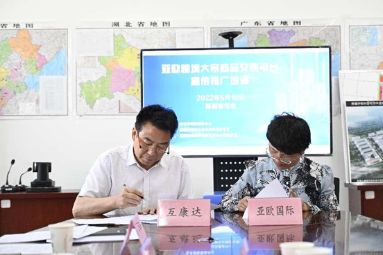 2018年4月18日,新疆亚欧国际物资交易中心有限公司董事长张宏萍受邀参访广东跨境电子商务协会和广州市跨境电子商务协会,双方签订了战略合作协议,就如何联动上合组织成员国产品跨境交易、新疆农产品上行、珠三角地区工业品下行等相关事项进行了认真细致的交流,为下一步新疆和广东两省在互联互通、资源信息共享方面奠定了坚实基础。