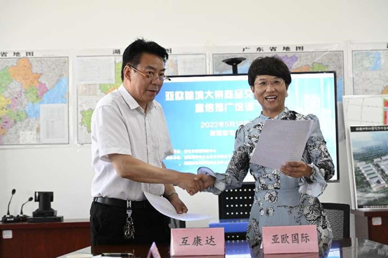 2018年3月15日,新疆亚欧国际物资交易中心有限公司董事长张宏萍到商务部五矿商会进行项目推荐会,五矿商会会长陈锋组织相关人员听取了公司关于亚欧国际跨境大宗商品交易平台的项目汇报,并对下一步如何联动五矿商会企业提出了具体建议。