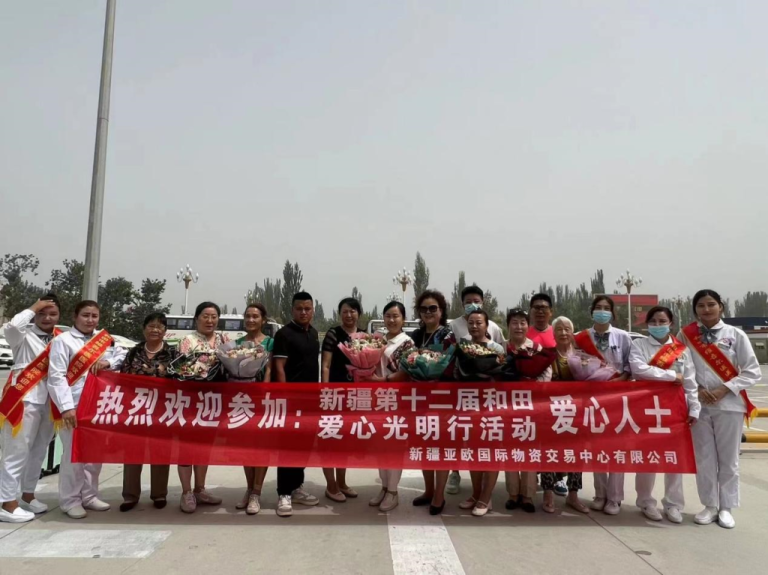 由新疆亚欧国际物资交易中心有限公司张宏萍董事长发起的新疆第六届爱心光明行活动在喀什岳甫湖县举行,为100名少数民族白内障患者做了复明手术;