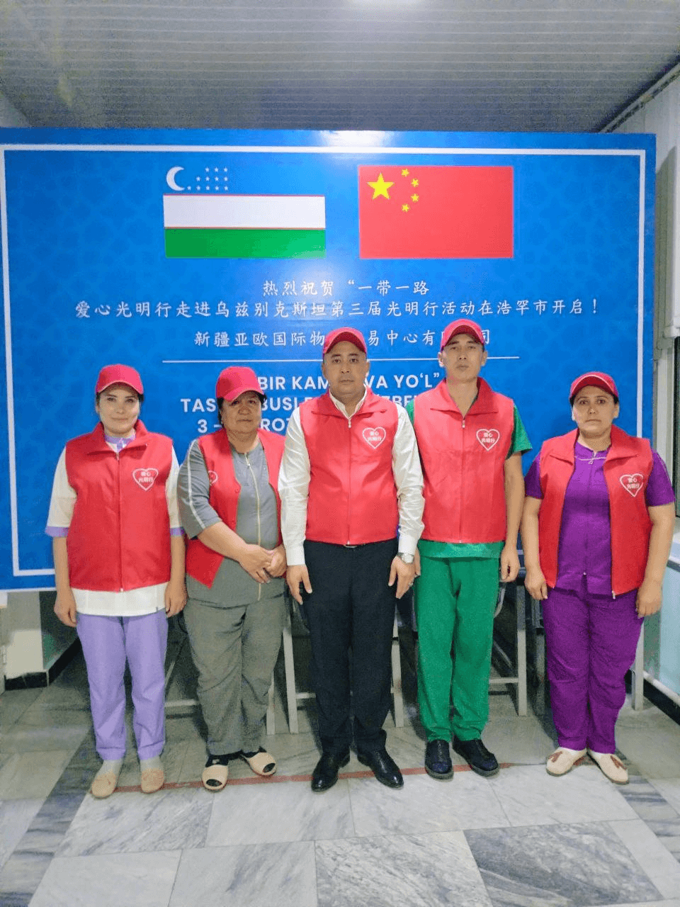 2019年3月2日至2019年3月8日,由新疆亚欧国际物资交易中心有限公司发起的“一带一路爱心光明行走进乌兹别克斯坦活动”成功举办,共为74名妇女儿童白内障患者免费实施复明手术,为一名双目失明的少女实施瞳孔再造手术,使他们重见光明。此外还举办了摄影、绘画展、玉文化、非物质文化产品展示会,增进了中乌两国人民的友谊,促进了中乌经贸的快速发展。