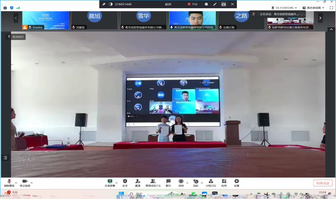 参加亚博会和蓝迪智库在克位玛依组织召开的研讨会,张宏萍董事长在研讨会上进行了专题发言,就跨境大宗商品交易平台在国家一带一路中的重要作用进行了认真的阐述。
